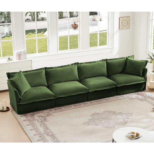 Fluffy Chenille 4-Seat Couch – Olive, Washable