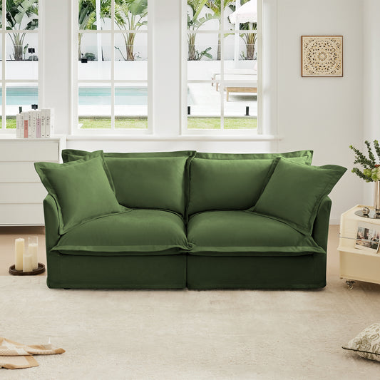 Fluffy 2-Seat Chenille Modular Sofa – Olive, Washable