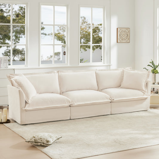 Fluffy Chenille 3-Seat Sofa – Cream, Washable