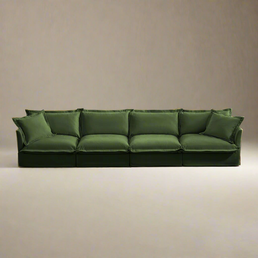 Fluffy Chenille 4-Seat Couch – Olive, Washable